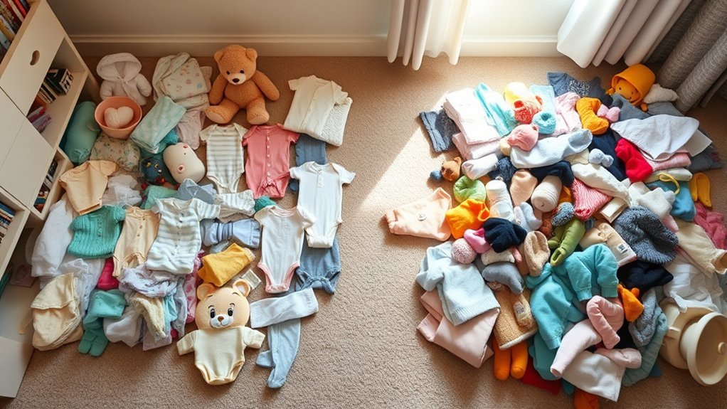 To pack baby gear efficiently, use clear, labeled bins for easy visibility, a compact diaper bag for essentials, and packing cubes for organization. Don’t forget to prioritize accessibility and make sure everything’s lightweight for travel!